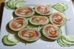 Spicy Crab, Cucumber, w/ Salmon, Tuna, Green Onion, Lemon, Masago on Top