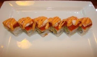 Shrimp, Spicy Crab, Fried Jalapeno, w/ Salmon, Green Onion, Masago on Top