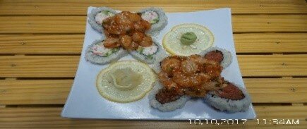 Shrimp, Spicy Crab, Fried Jalapeno, w/ Salmon, Green Onion, Lemon, Masago on Top